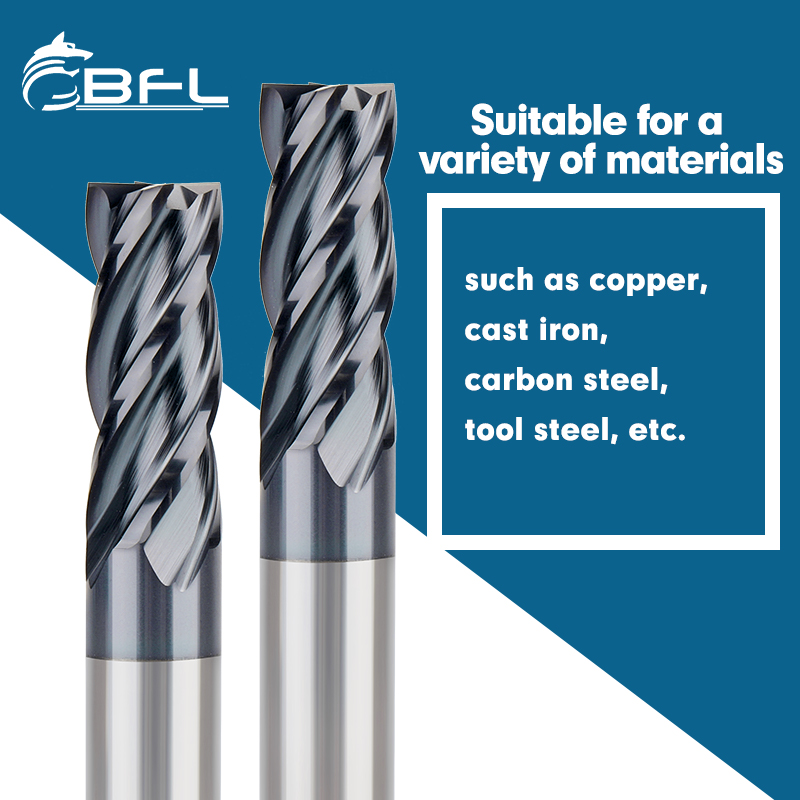 ดอกกัดเหล็กกล้าไร้สนิม คาร์ไบด์ แบบแบน 4 ฟลุต รุ่นใหม่ BFL สำหรับโลหะที่มีความแข็งสูง